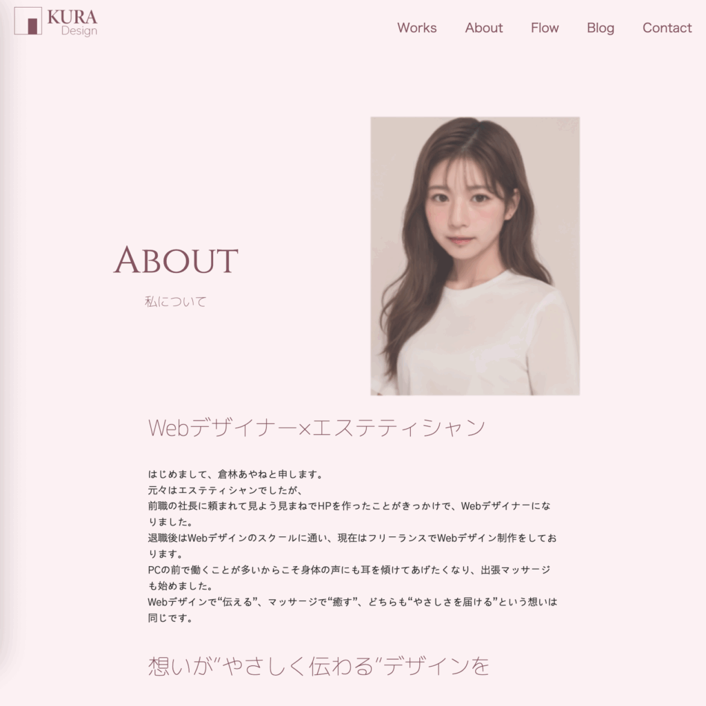 Aboutページでは、人柄や想いを伝えることで『この人にお願いしたい』と安心していただけます。