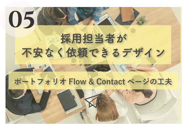 デザインの良し悪しだけではなく、「どんな思いで制作しているのか」「どこまで任せられるのか」といった人物像や制作プロセスが伝わりづらく、クライアント様にとっての安心材料が不足している点が課題でした。